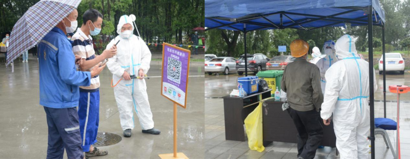 清晨,在綿綿細雨中園區(qū)新一輪區(qū)域核酸檢測有序推進,核酸檢測點搭起遮雨帳篷,公司廣大黨員干部奮勇?lián)敍_鋒在前,維護秩序、進行掃碼,醫(yī)護人員快速有效地采集核酸。大家上下同心、通力配合,有序高效的進行核酸檢測,僅用了三個多小時就全面完成了園區(qū)人員核酸采樣工作。據(jù)統(tǒng)計,本次核酸檢測共有1103名干部職工及外租單位人員參加,檢測結果全部為陰性。