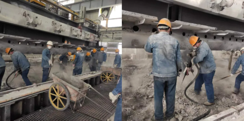 電解槽大修如同外科手術(shù),需在有限停槽期內(nèi)完成數(shù)個(gè)部件的拆解、檢測(cè)與更換。延誤一天,意味著效益的損失。為搶進(jìn)度,電解車間將人員分成四班倒,可實(shí)際干起來(lái),所有人都不約而同選擇了“連軸轉(zhuǎn)”。技術(shù)員小王剛下白班,見(jiàn)夜班人手緊張,抓起手套又鉆進(jìn)了槽底:“早一天啟動(dòng),就能多增加1噸多的鋁液!”槽頂排風(fēng)機(jī)的嗡鳴聲中,安全員老周扯著嗓門(mén)喊:“防護(hù)面罩戴緊!粉塵吸進(jìn)肺里要命!”他手里的強(qiáng)光手電掃過(guò)槽底,光束里翻騰的塵埃像一場(chǎng)無(wú)聲的雪暴。十幾米長(zhǎng)的電解槽如同被解剖的巨獸,槽殼敞露,陰極鋼棒上斑駁的電解質(zhì)結(jié)痂仿佛鱗片,記錄著它連續(xù)運(yùn)轉(zhuǎn)10多年的疲憊。這是大修的關(guān)鍵戰(zhàn)役—— 7天內(nèi),必須讓電解槽“復(fù)活”。