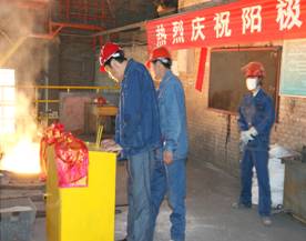 2012年7月7日上午11點(diǎn)零19分,青海物產(chǎn)工業(yè)投資有限公司10萬噸電解鋁/年升級(jí)改造項(xiàng)目,簡(jiǎn)易陽極組裝車間大門前鞭炮齊鳴。青海物產(chǎn)工業(yè)投資有限公司黨總支副書記、青海長(zhǎng)春炭素有限公司總經(jīng)理王松華,公司常務(wù)副總經(jīng)理、項(xiàng)目副總指揮常海寧,工業(yè)投資和長(zhǎng)春炭素公司副總經(jīng)理姜紅萍,公司副總經(jīng)理張秉瑜,總經(jīng)理助理范登福等公司領(lǐng)導(dǎo)和各車間、部室的職工出席了簡(jiǎn)單的點(diǎn)火澆鑄儀式。王松華同志按下了點(diǎn)火按鈕鄭重宣布澆鑄正式開始。當(dāng)中頻爐工將第一爐鐵水倒入抬包時(shí),標(biāo)志著新陽極組裝車間正式投產(chǎn)運(yùn)行。